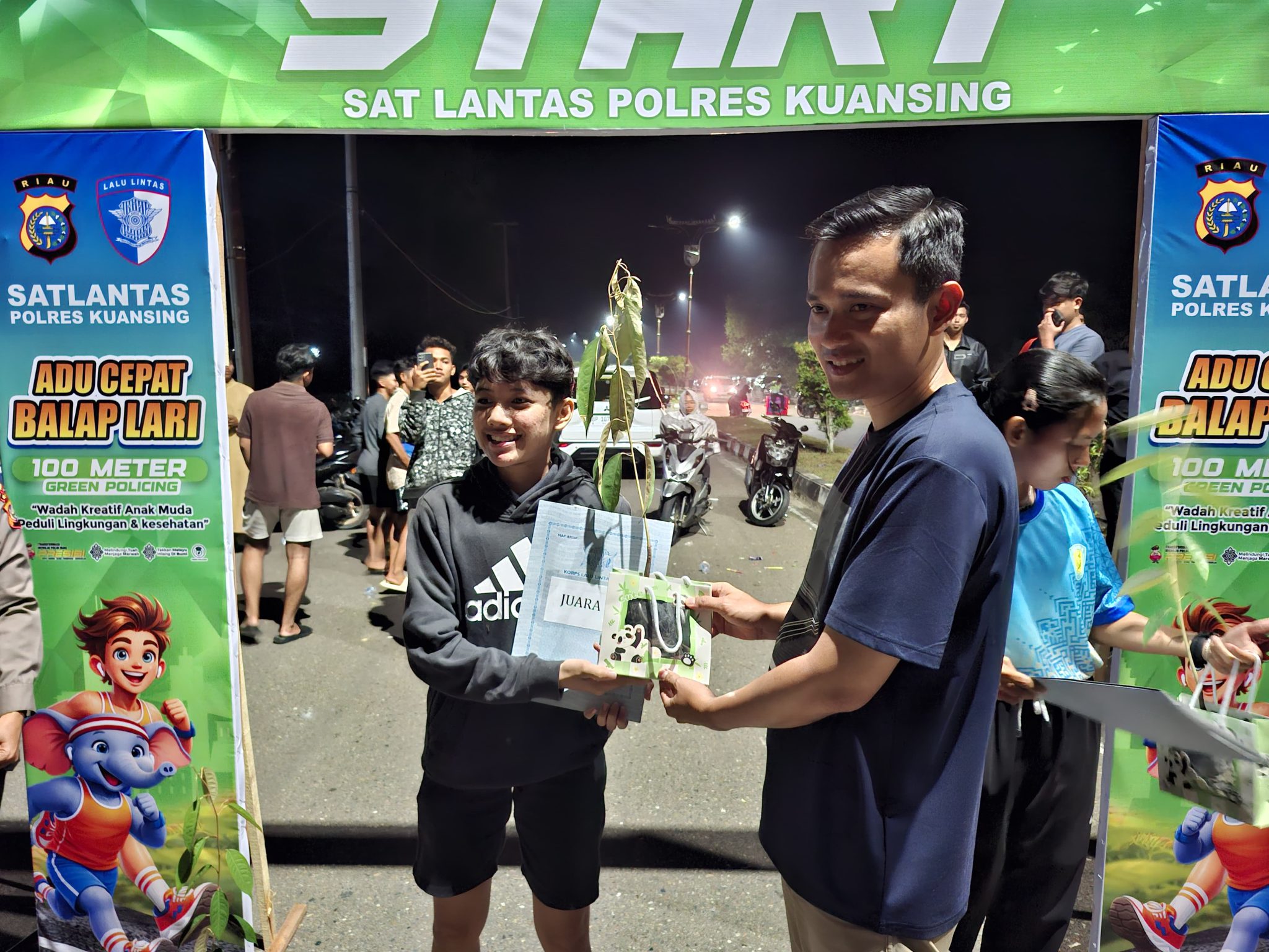 Sebagai bentuk apresiasi, Polres Kuansing menyerahkan hadiah berupa uang pembinaan dan bibit pohon kepada para pemenang. Untuk kategori laki-laki, Juara I diraih Farel, Juara II Muhammad Andre, serta Raiz dan Fransiska sebagai juara berikutnya. Sementara kategori perempuan, Juara I diraih Rara dan Juara II diraih Mery.