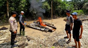 Sekira pukul 10.00 WIB, tim menemukan lokasi yang diduga menjadi tempat aktivitas PETI jenis setingkai. Namun saat didatangi, lokasi tersebut sudah tidak beroperasi. Untuk mencegah digunakan kembali, petugas bersama masyarakat melakukan penertiban dengan merusak serta membakar peralatan yang ditemukan di lokasi.
